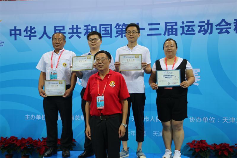 7月7日,第十三届全运会群众项目太极拳决赛在天津理工大学体育馆圆满落幕。宏舜集团被中华人民共和国第十三届运动会武术套路项目竞委会授予“第十三届全国运动会群众比赛特殊贡献奖”、总裁刘海鑫被授予“突出贡献奖”荣誉称号。天津市体育局武术射击射箭管理中心主任刘伟为其颁奖。