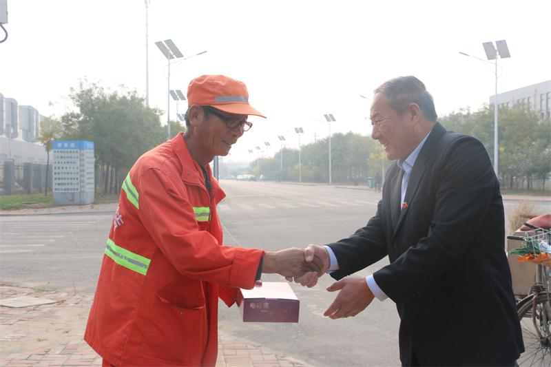 最后,刘炳洪董事长动情地说,人们喜欢把环卫工人比喻为城市的美容师,有了他们,我们的城市才变得清洁干净,有了他们,我们的城市才变得优美舒适。他们的工作是普通的,但是他们用普通诠释崇高,他们的个体是渺小的,但他们用渺小诉说着伟大。因此我们一定要多关心他们的工作和生活,用我们的真情去关爱他们、帮助他们,让他们感受集团大家庭的温暖。