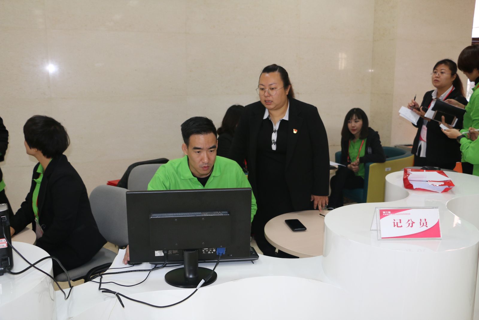 值得一提的是,本届大赛为了保证整个赛程严谨、规范、透明,在组织实施环节大胆创新。首先在考试现场首次安装了1对1的摄像头,全程录像,便于裁判员准确计分;其次全部邀请市级专家,确保对各区选手客观评分;再次采取标准化计分系统统计分数,确保大赛计分评奖环节准确、高效;除此之外还在设置现场LED屏幕即时公布选手比分,力求最大限度地实现比赛的公开、公平、公正。