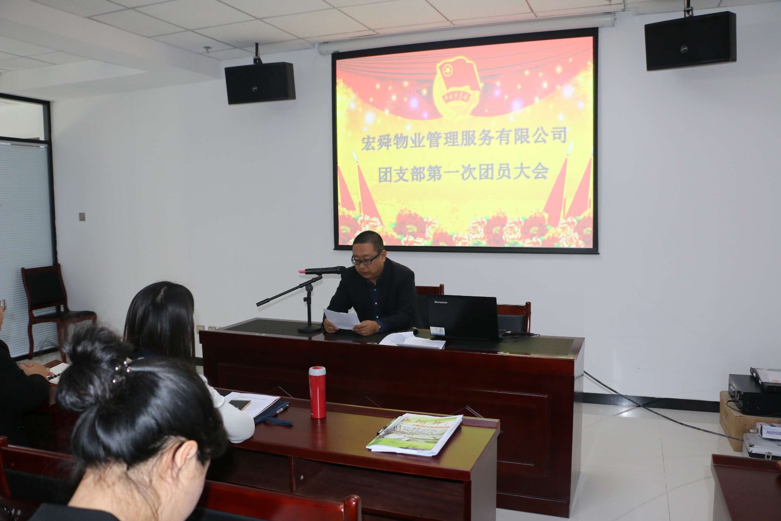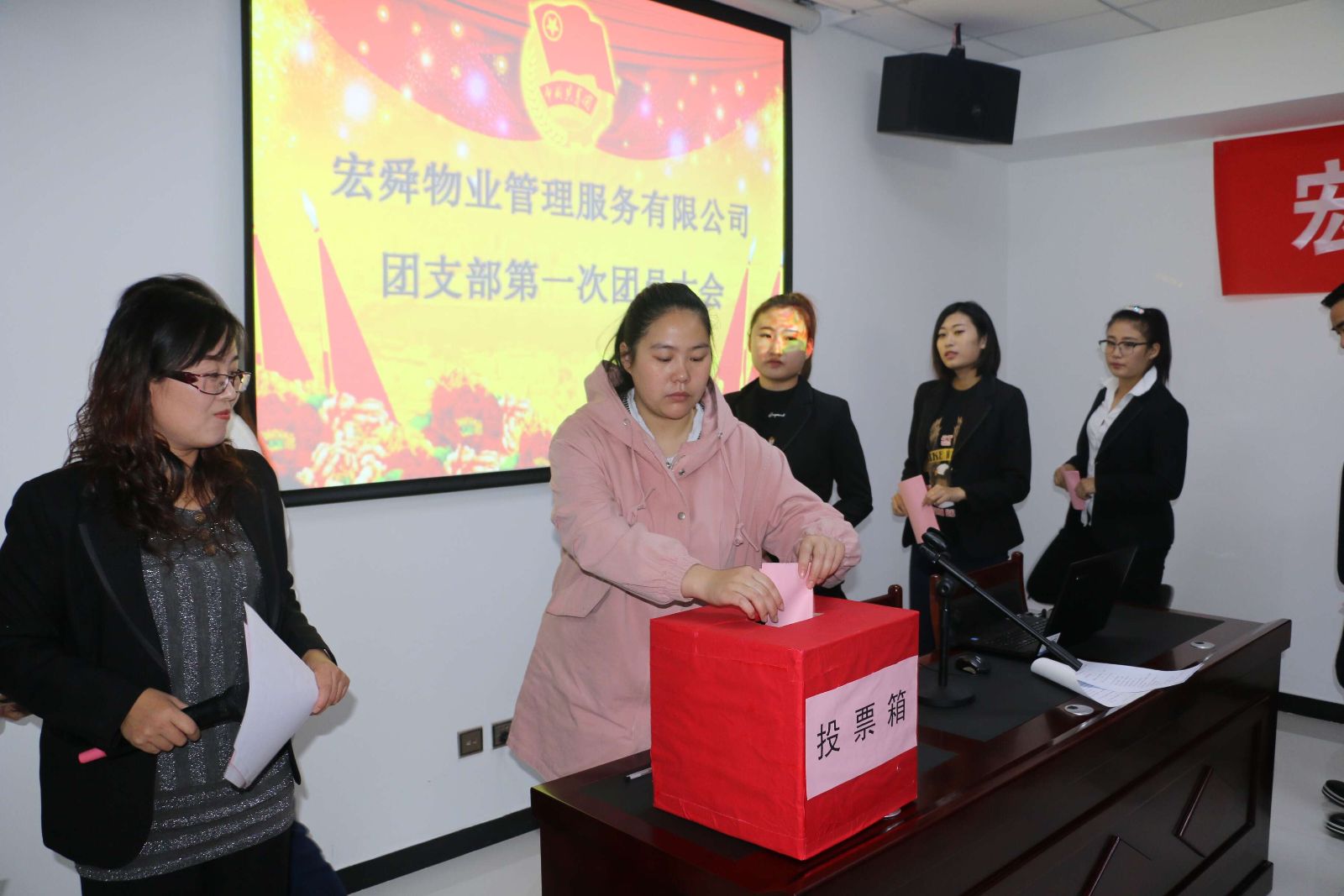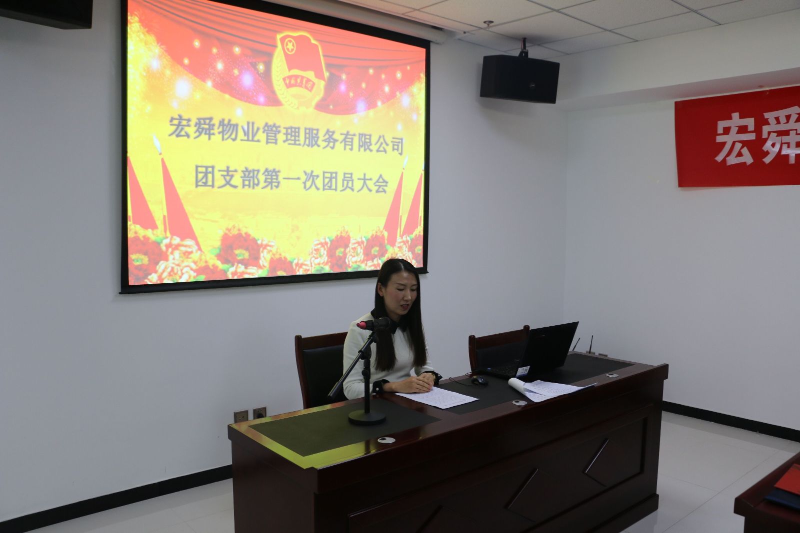 本报讯(记者 李 宁)11月15日,共青团宏舜物业支部第一次团员大会顺利召开。咸水沽镇团委书记周炜莅临会议并讲话,公司30余名团员参加了会议,集团董事长刘炳洪,集团党支部书记、总裁刘海鑫出席会议。